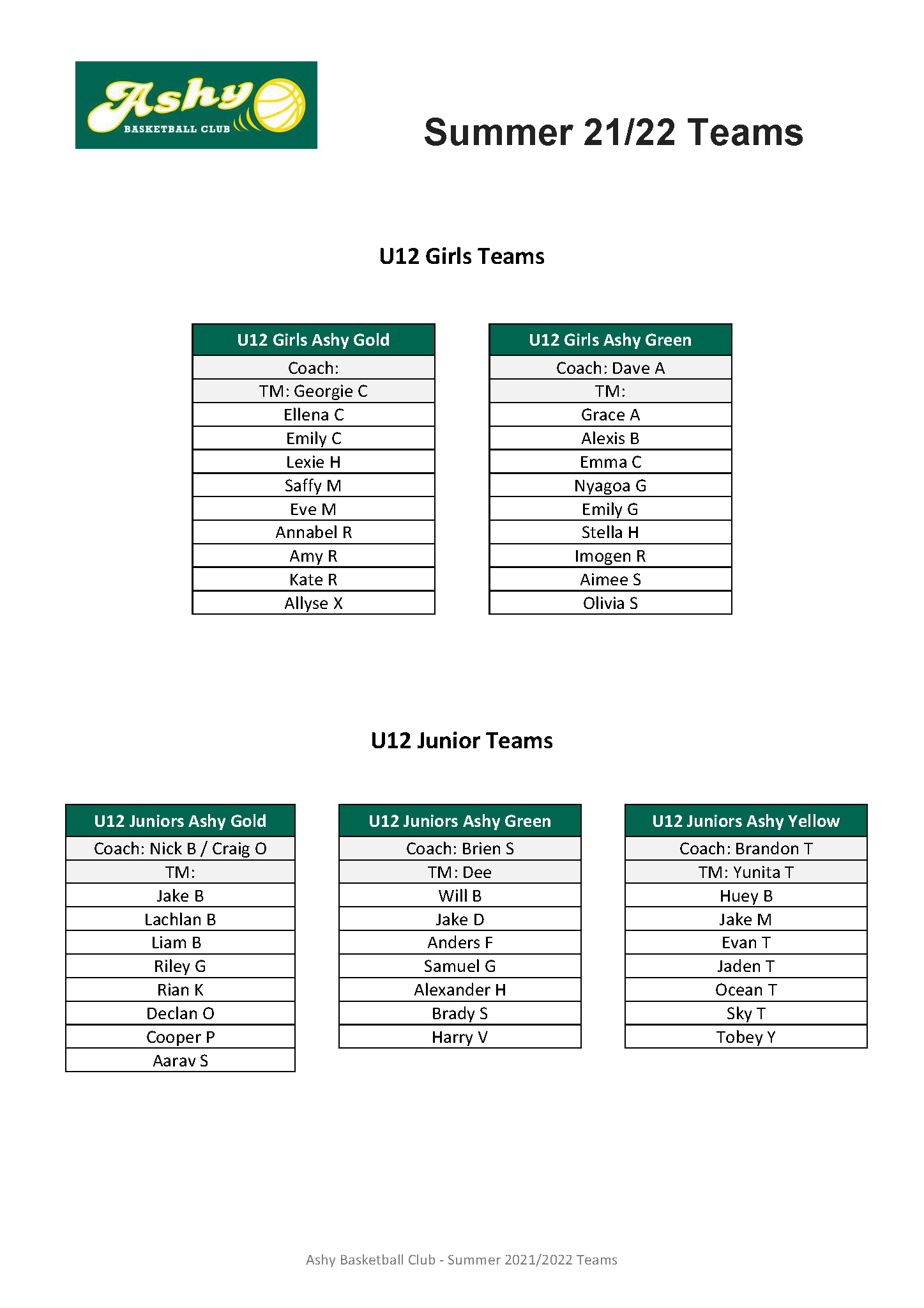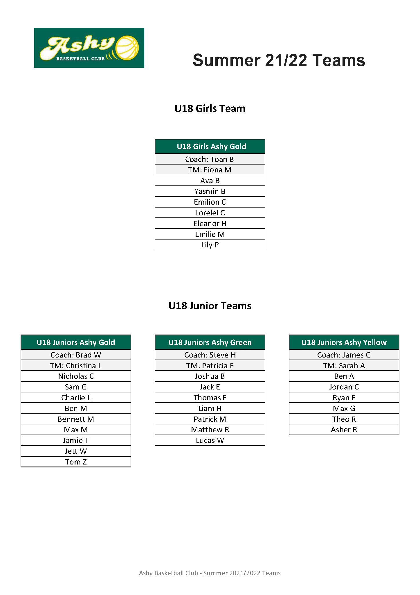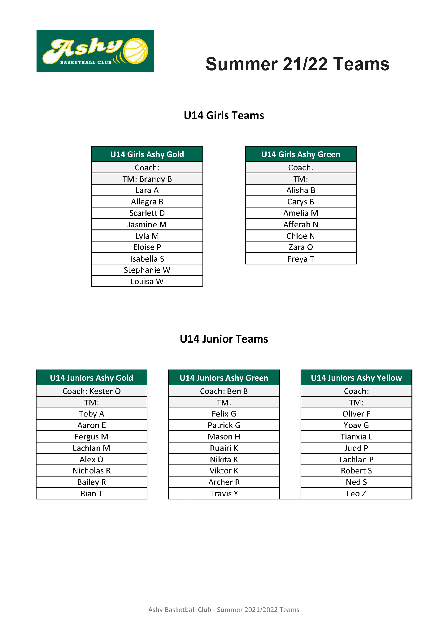 Teams Summer 21/22 teams by ashybbclub|Published October 26, 2021-Updated September 20, 2022 Summer 21/22 teams have been announced.