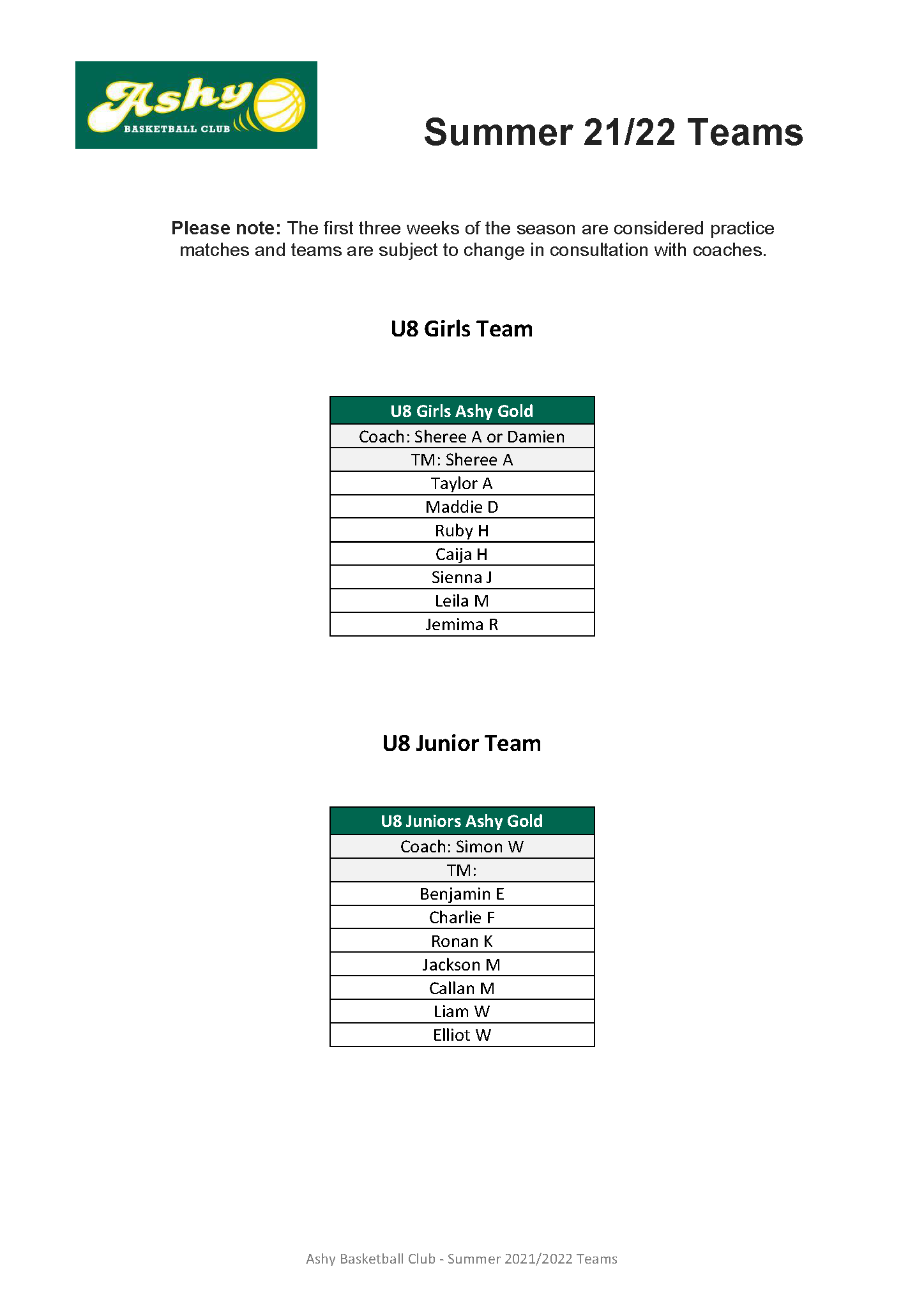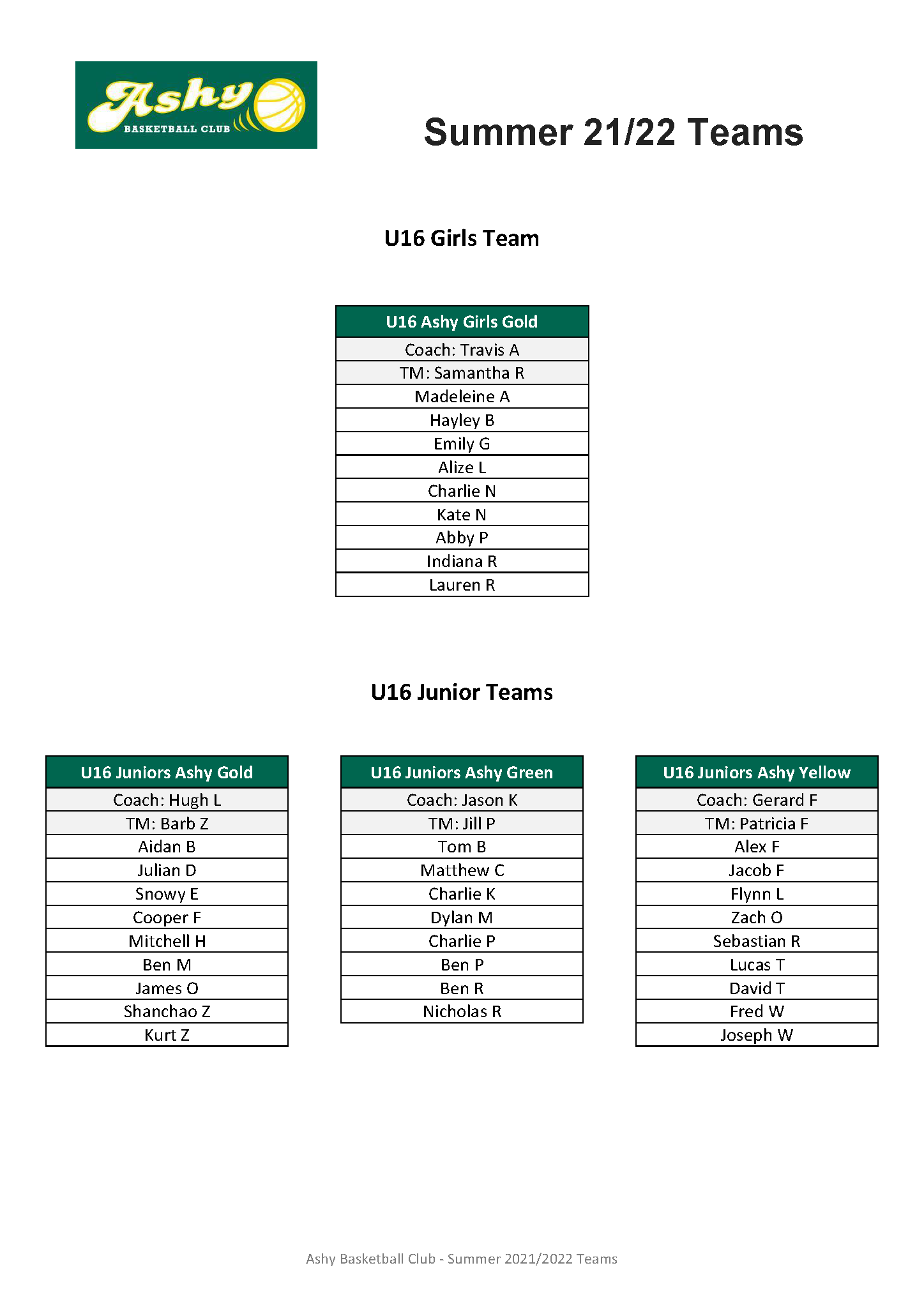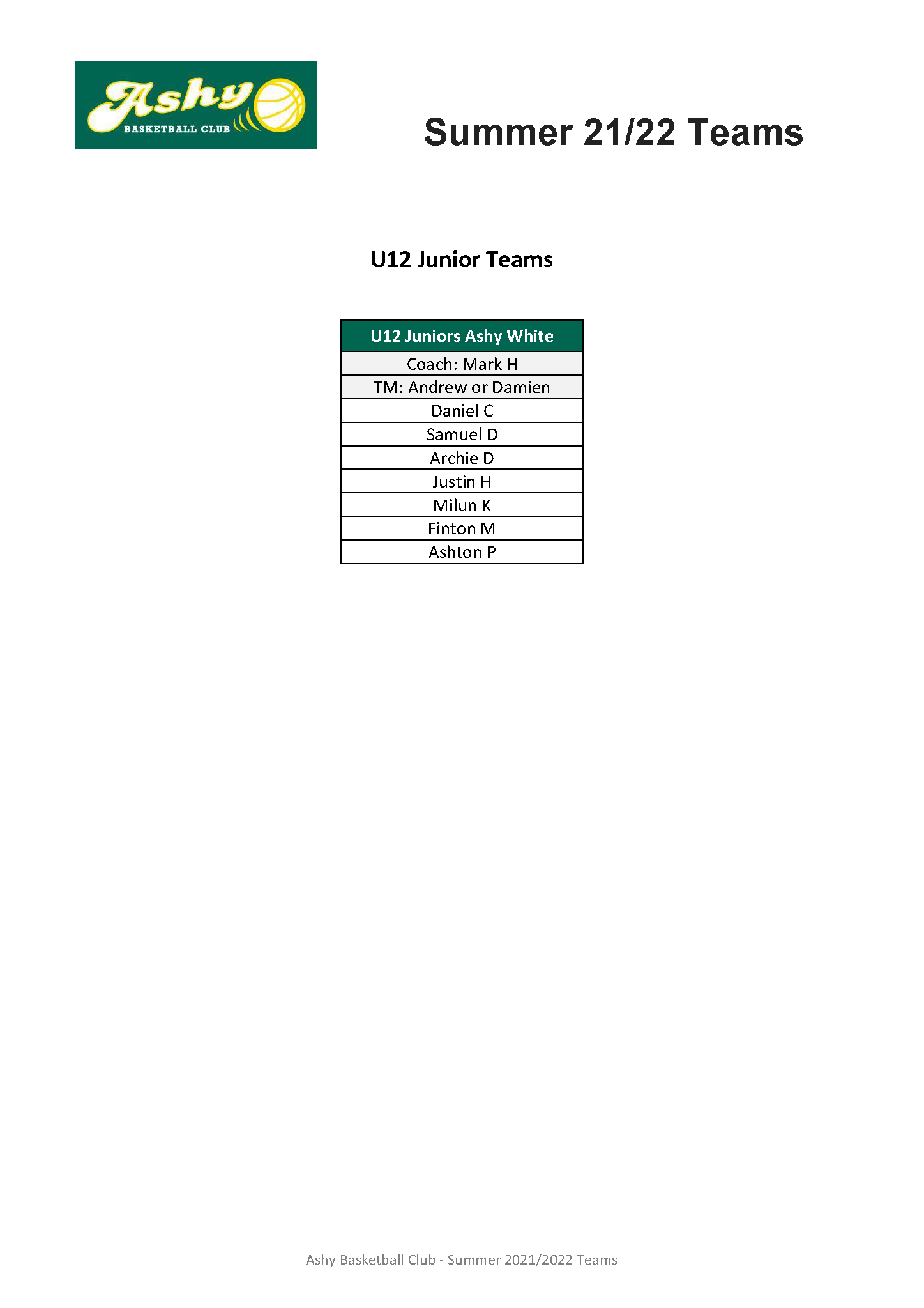 Teams Summer 21/22 teams by ashybbclub|Published October 26, 2021-Updated September 20, 2022 Summer 21/22 teams have been announced.